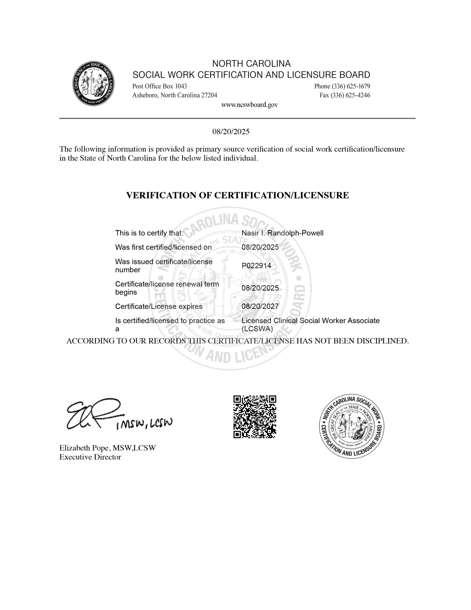 Active licensure; supervised clinical practice serving Medicaid and community-based populations.
